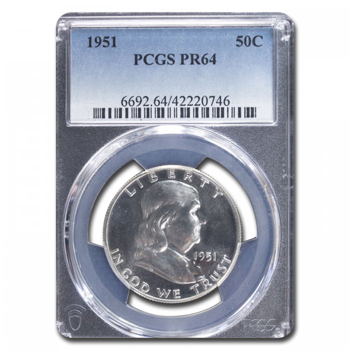 Only $409.99 per coin This 1951 Franklin Half Dollar has been certified as PR-64 by PCGS, one of the top two coin grading services. This highly collectible coin is a great addition to any numismatic collection!