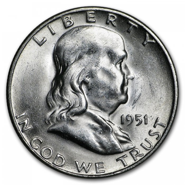Obverse: Depicts a profile of Ben Franklin facing right. "LIBERTY" is above Franklin