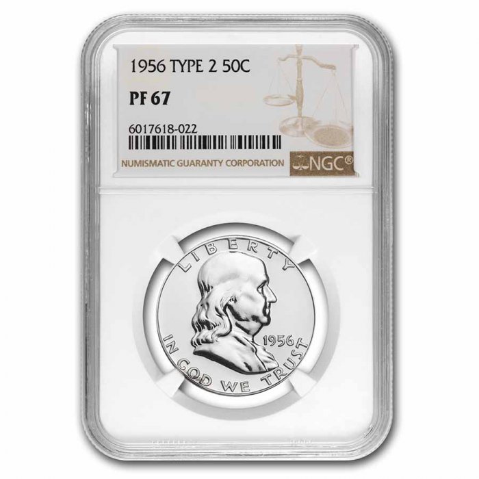 This 1956 Franklin Half Dollar Type-II has been certified as PF-67 by NGC, one of the top two coin grading services. This certifies exceptional quality for the grade.