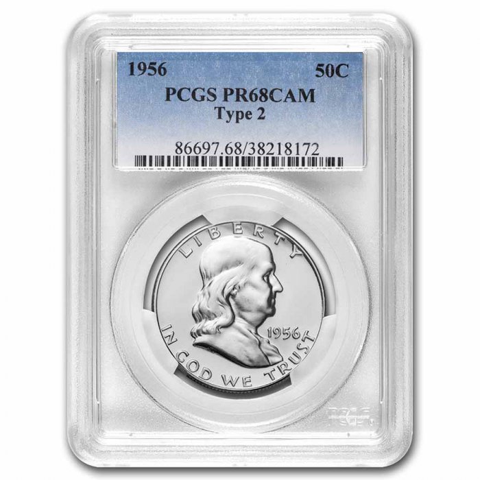 This 1956 Franklin Half Dollar Type-II has been certified as PR-68 Cameo by PCGS, one of the top two coin grading services. This highly collectible coin is a great addition to any numismatic collection!