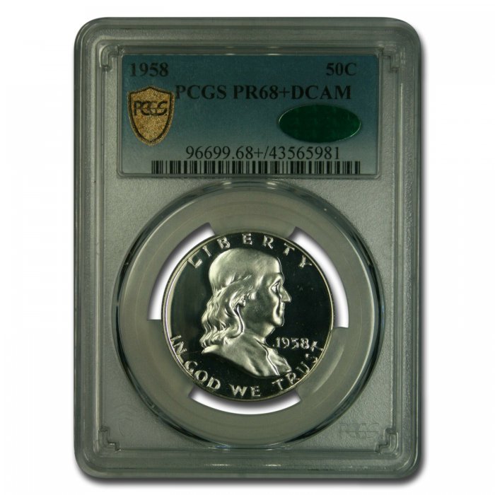 This 1958 Franklin Half Dollar has been certified as PR-68+ DCAM by PCGS, one of the top two coin grading services. This coin has a population of only 3 coins!
