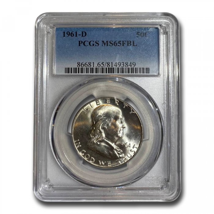 This 1961-D Franklin Half Dollar has been certified as MS-65 (FBL) by PCGS, one of the top two coin grading services. This highly collectible coin is a great addition to any numismatic collection!