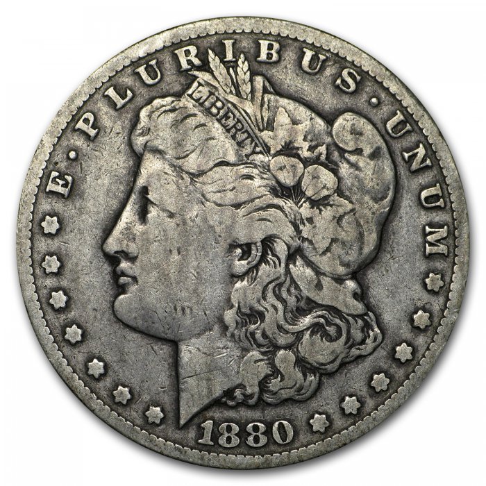 The Morgan Silver Dollar is the most popular Silver dollar collected in the world for its classic design of Liberty. All design elements on this 1880-CC issue are distinct with average wear.