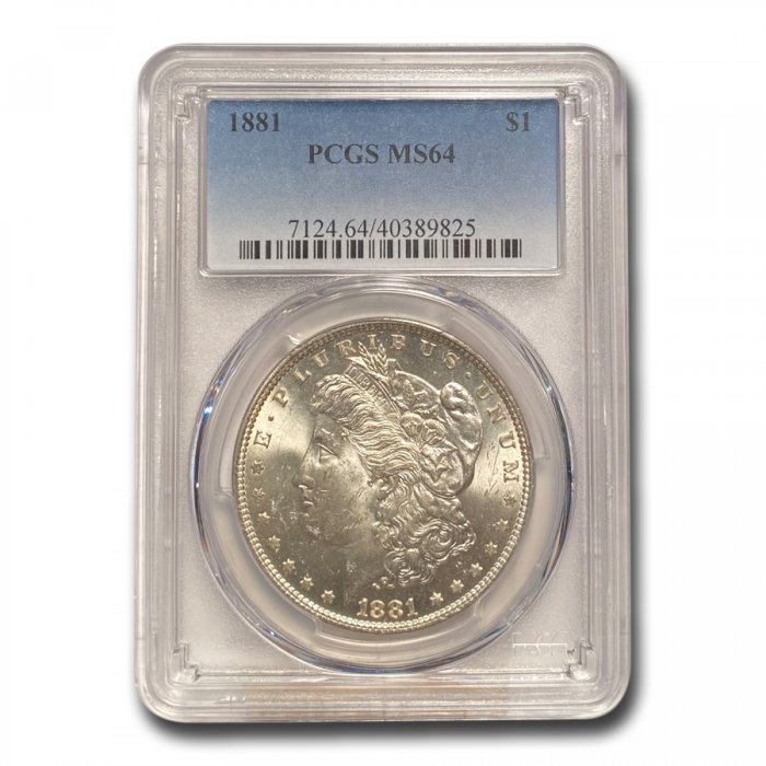 The iconic Morgan Silver Dollar is the most popular Silver dollar in the world. This 1881 Morgan Dollar has been graded an MS-64 by PCGS, one of the top coin grading services.