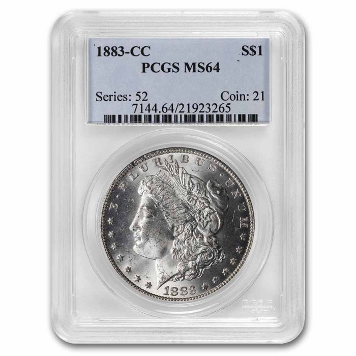 The Morgan Silver Dollar, minted from 1878-1904 and again in 1921, is the most popular Silver dollar collected in the world. This 1883-CC Morgan Dollar has been guaranteed by PCGS as being MS-64.