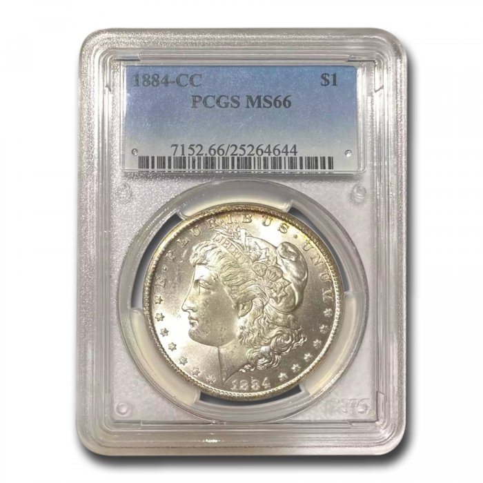 This 1884-CC Morgan Dollar has been certified as MS-66 by PCGS, one of the top two coin grading services. This highly collectible coin is a great addition to any numismatic collection!