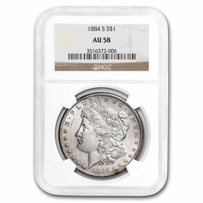 This 1884-S Morgan Dollar has been certified as AU-58 by NGC, one of the top two coin grading services. This highly collectible coin is a great addition to any numismatic collection!