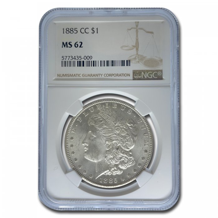 This 1885-CC Morgan Dollar has been certified as MS-62 by NGC, one of the top two coin grading services. This highly collectible coin is a great addition to any numismatic collection!