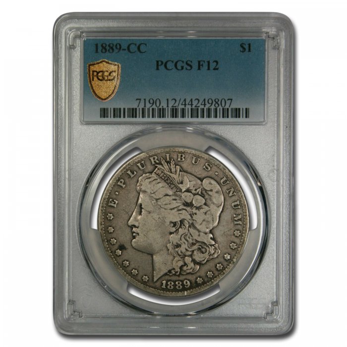 This 1889-CC Morgan Dollar has been certified as Fine-12 by PCGS, one of the top two coin grading services. This highly collectible coin is a great addition to any numismatic collection!