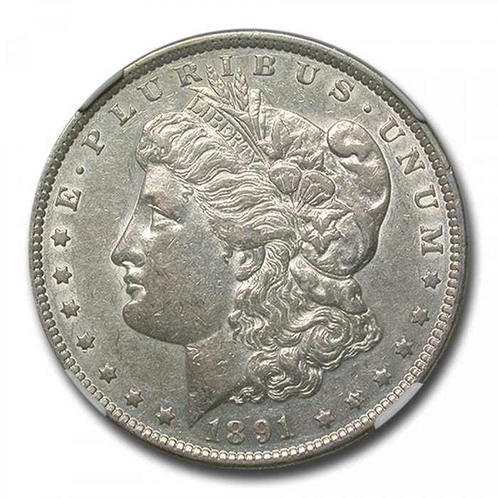 This 1891-CC Morgan Dollar (VAM-3 Spitting Eagle, Top-100) has been certified as AU-53 by NGC, one of the top two coin grading services. This coin has a population of only 219 coins!