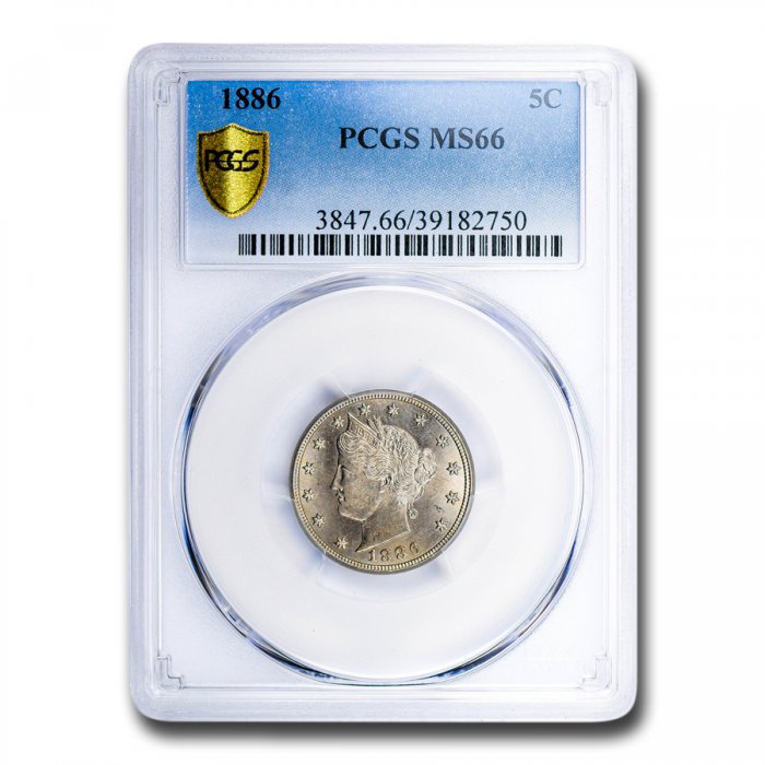 This 1886 Liberty Nickel has been certified as MS-66 by PCGS, one of the top two coin grading services. This coin has a population of only 32 coins!