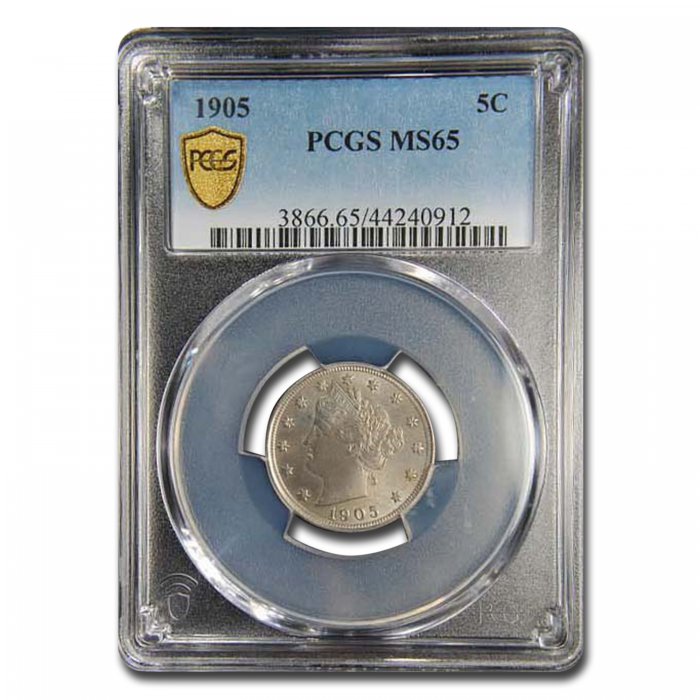 This 1905 Liberty Head V Nickel has been certified as MS-65 by PCGS, one of the top two coin grading services. This highly collectible coin is a great addition to any numismatic collection!