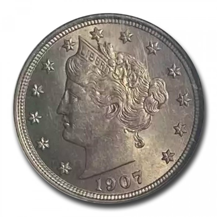 This 1907 Liberty Head V Nickel has been certified as MS-63 by NGC, one of the top two coin grading services. This coin has a population of only 167 coins!