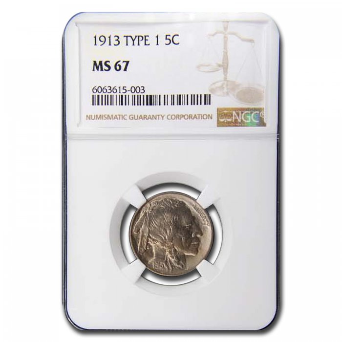 This 1913 Buffalo Nickel has been certified as MS-67 by NGC, one of the top two coin grading services. This highly collectible coin is a great addition to any numismatic collection.
