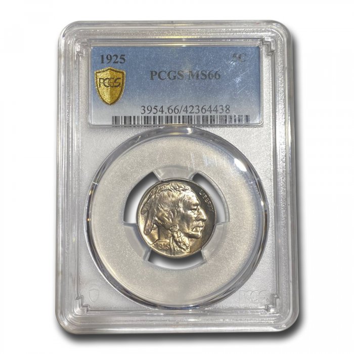 This 1925 Buffalo Nickel has been certified as MS-66 by PCGS, one of the top two coin grading services. This highly collectible coin is a great addition to any numismatic collection!