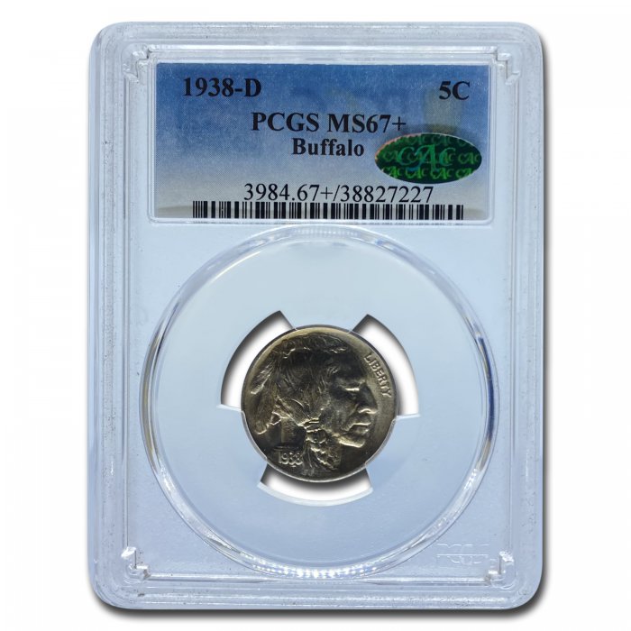 This 1938-D Buffalo Nickel has been certified as MS-67+ by PCGS, one of the top two coin grading services. This coin has a population of only 253 coins!