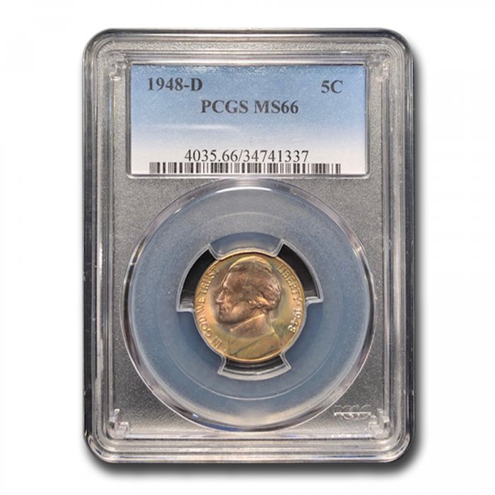 This 1948-D Jefferson Nickel has been certified as MS-66 by PCGS, one of the top two coin grading services. This highly collectible coin is a great addition to any numismatic collection!