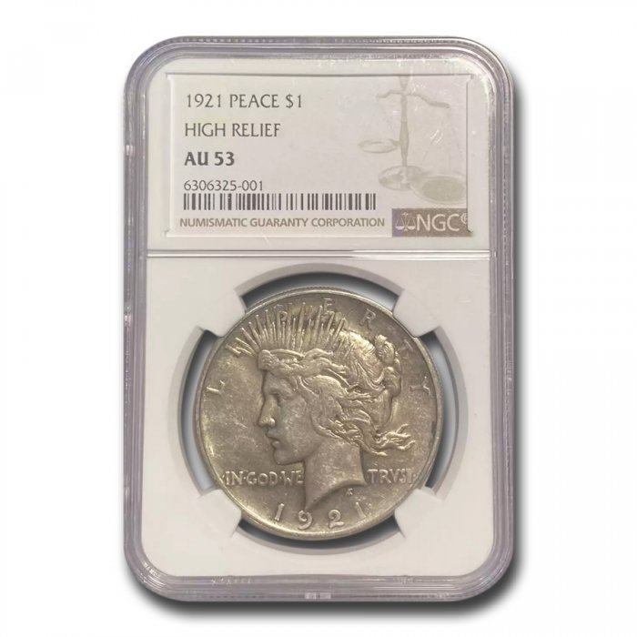 The 1921 Peace Dollar with its High Relief is considered the most beautiful Peace Dollar by many collectors. Striking the coins in high relief was very hard on the dies, so in 1922 the mint switched to a much lower relief.