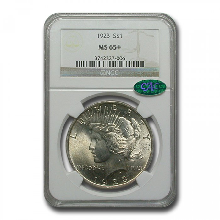 This 1923 Peace Dollar has been certified as MS-65+ by NGC, one of the top two coin grading services. This highly collectible coin is a great addition to any numismatic collection!