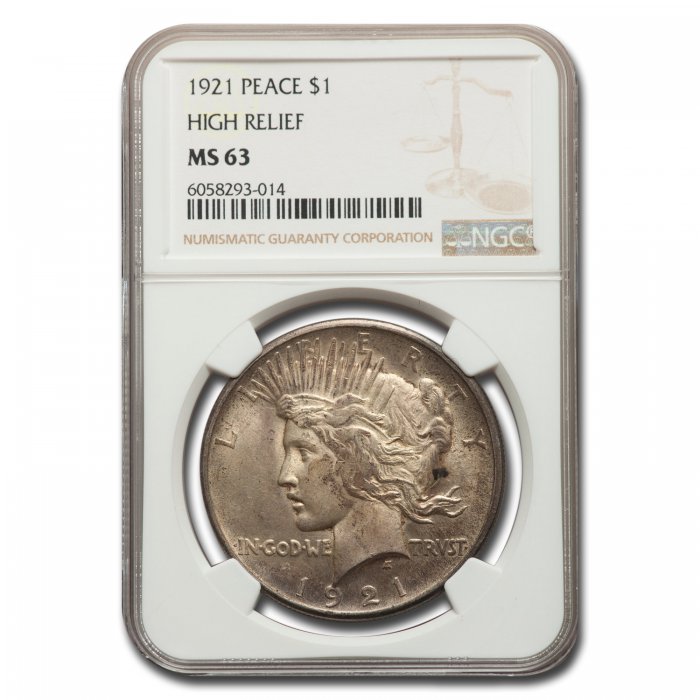 The 1921 Peace Dollar with its High Relief is considered the most beautiful Peace Dollar by many collectors. Striking the coins in high relief was very hard on the dies, so in 1922 the mint switched to a much lower relief.