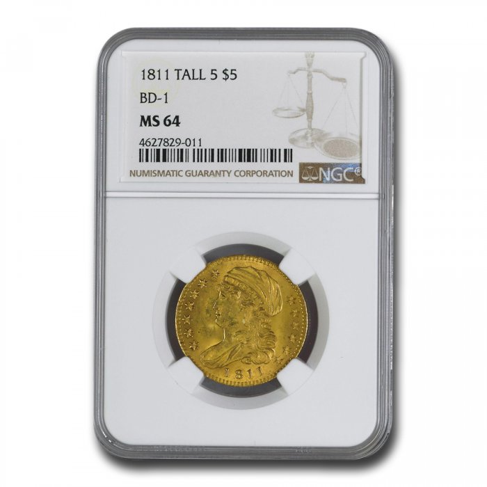 / Buy 1811 $5 Capped Bust Gold Half Eagle MS-64 NGC (Tall 5, BD-1)