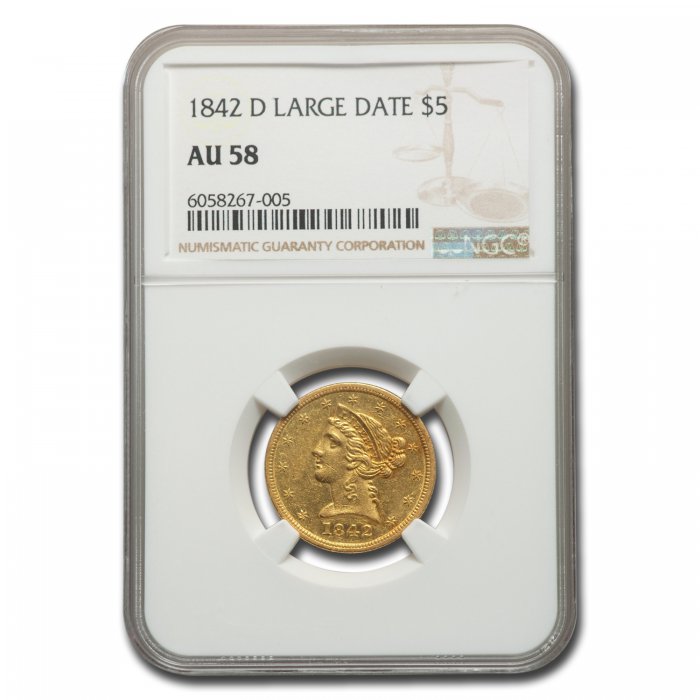 / Buy 1842-D $5 Liberty Gold Half Eagle AU-58 NGC (Large Date)