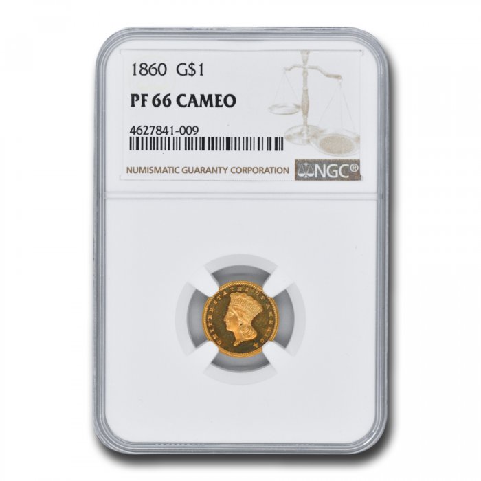This 1860 $1 Indian Head Gold has been certified as PF-66 Cameo by NGC, one of the top two coin grading services.
