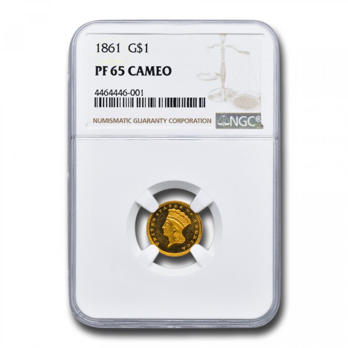 / Buy 1861 $1 Indian Head Gold PF-65 Cameo NGC