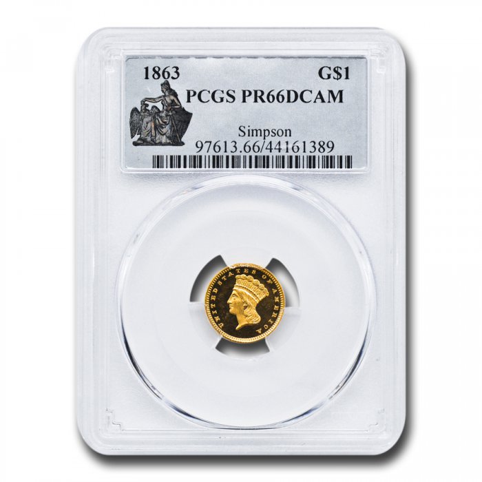 / Buy 1863 $1 Indian Head Gold PR-66 DCAM PCGS