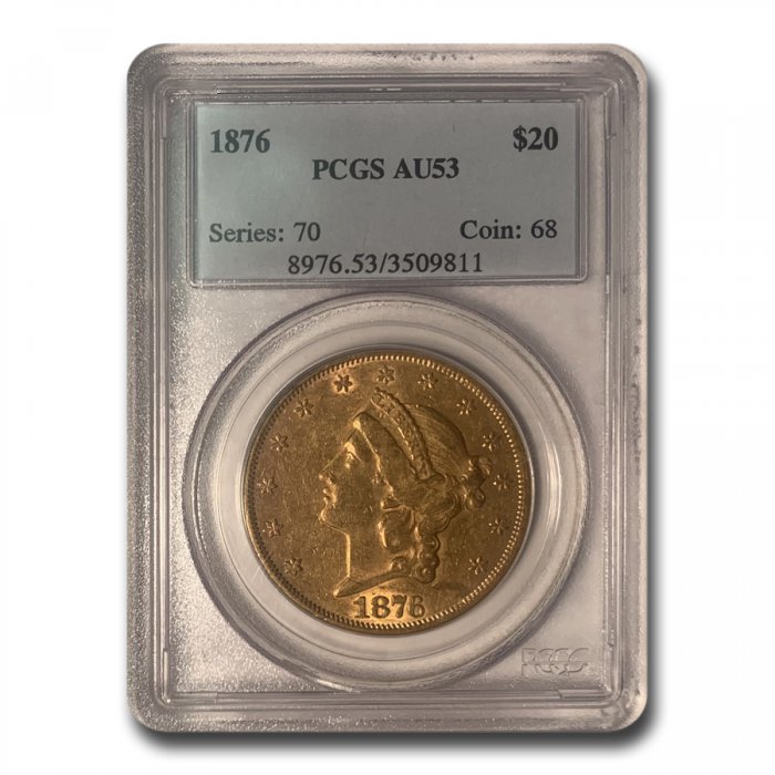 Only $2,529.00 per coin This 1876 $20 Liberty Gold Double Eagle has been certified as AU-53 by PCGS, one of the top two coin grading services. This coin has a population of only 172 coins!