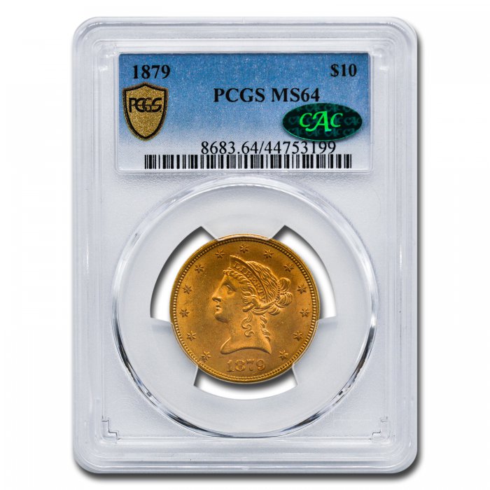 This 1879 $20 Liberty Gold Eagle has been certified as MS-64 by PCGS, one of the top two coin grading services. This coin has a population of only 17 coins!