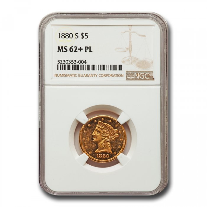 / Buy 1880-S $5 Liberty Gold Half Eagle MS-62+ NGC (PL)