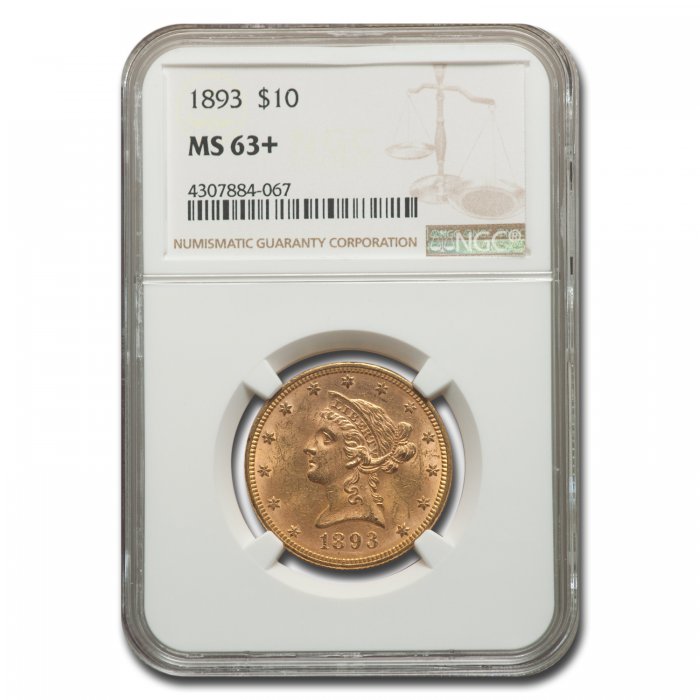 This 1893 $10 Liberty Gold Eagle has been certified as MS-63+ by NGC, one of the top two coin grading services. This coin has a population of only 33 coins!