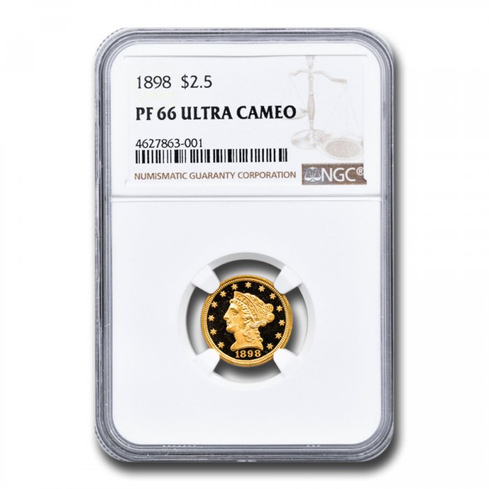 This 1898 $2.50 Liberty Gold Quarter Eagle has been certified as PF-66 UCAM by NGC, one of the top two coin grading services.
