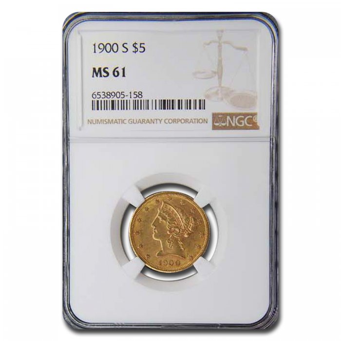 / Buy 1900-S $5 Liberty Gold Half Eagle MS-61 NGC