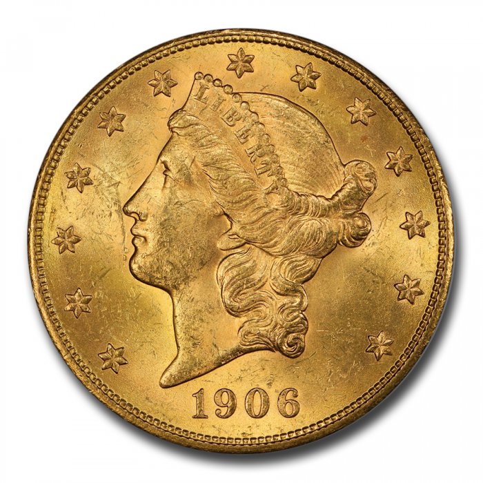 This 1906-S $20 Liberty Gold Double Eagle has been certified as MS-62 by PCGS, one of the top two coin grading services. This highly collectible coin is a great addition to any numismatic collection!