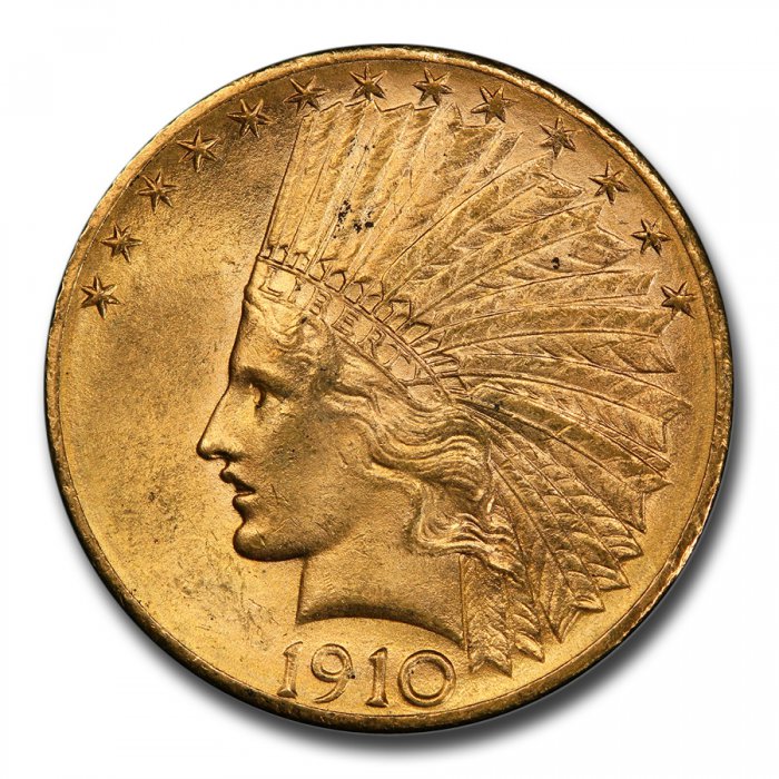This 1910-D $10 Indian Gold Eagle has been certified as MS-63 by PCGS, one of the top two coin grading services. This highly collectible coin is a great addition to any numismatic collection!