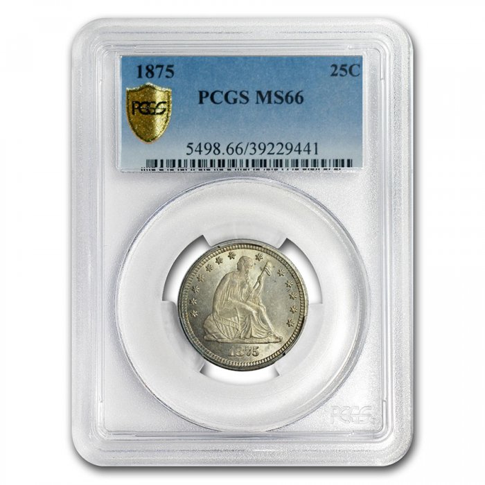 Only $2,589.00 per coin This 1875 Liberty Seated Quarter has been certified as MS-66 by PCGS, one of the top two coin grading services. This coin has a population of only {$Population} coins!