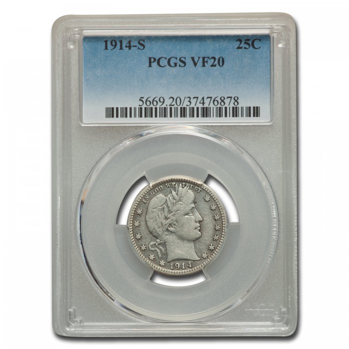 This coin will make a great addition to any collection. Add this 1914-S Barber Quarter to your cart today!