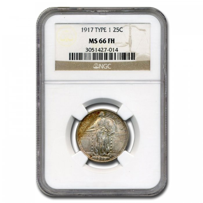 This 1917 Standing Liberty Quarter Type 1 has been certified as MS-66 (FH) by NGC, one of the top two coin grading services. This highly collectible coin is a great addition to any numismatic collection!