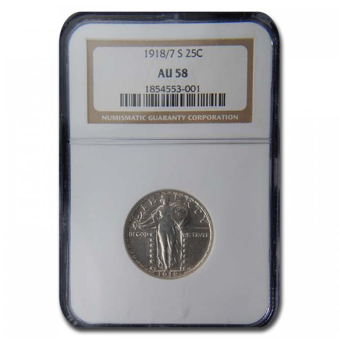 This 1918-S Standing Liberty Quarter has been certified as AU-58 by NGC, one of the top two coin grading services. This coin has a population of only 30 coins!