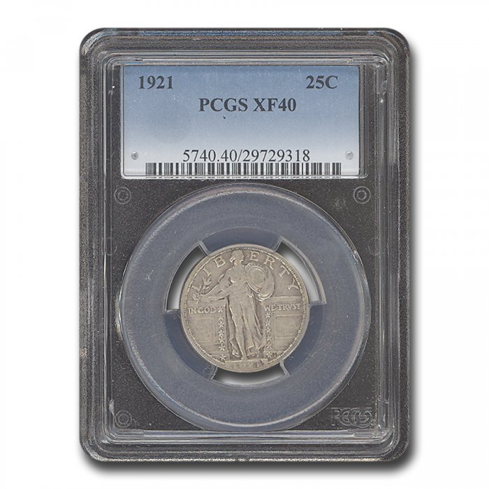 This 1921 Standing Liberty Quarter has been certified as XF-40 by PCGS, one of the top two coin grading services. This coin has a population of only 104 coins!
