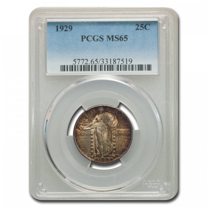 This 1929 Standing Liberty Quarter has been certified as MS-65 by PCGS, one of the top two coin grading services. This coin has a population of only 160 coins!