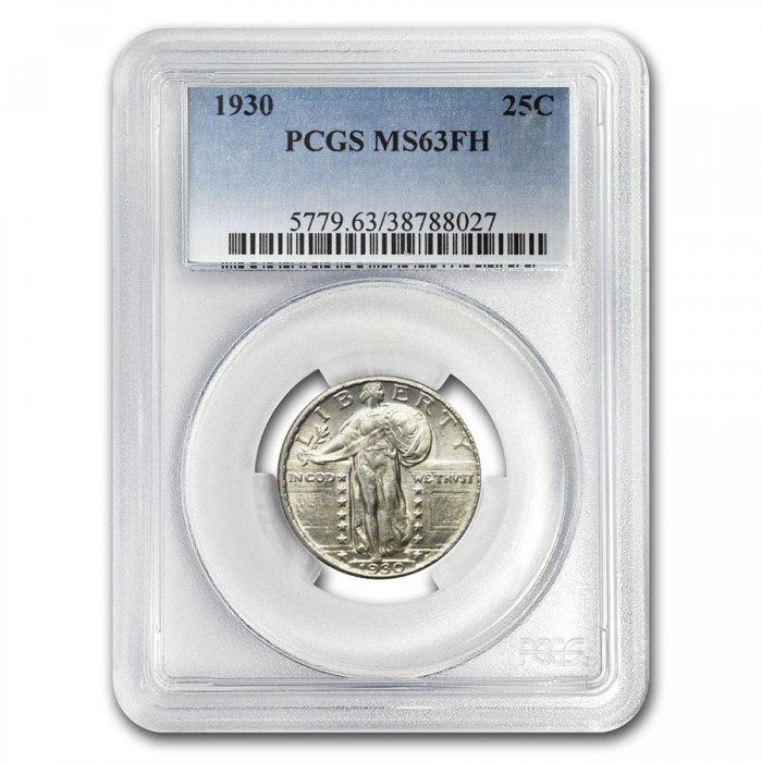 This 1930 Standing Liberty Quarter has been certified as MS-63 (FH) by PCGS, one of the top two coin grading services. This highly collectible coin is a great addition to any numismatic collection!