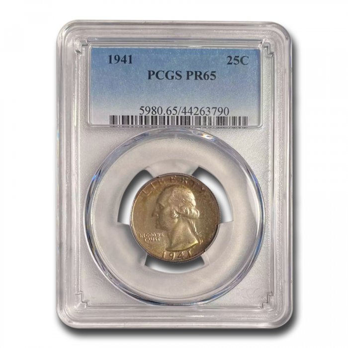 This 1941 Washington Quarter has been certified as PR-65 by PCGS, one of the top two coin grading services. This highly collectible coin is a great addition to any numismatic collection.