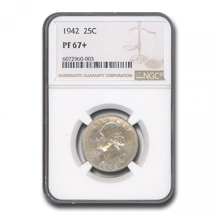 This 1942 Washington Quarter has been certified as PF-67+ by NGC, one of the top two coin grading services. This coin has a population of only 17 coins!