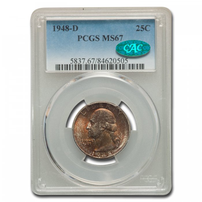 This 1948-D Washington Quarter has been certified as MS-67 by PCGS, one of the top two coin grading services.