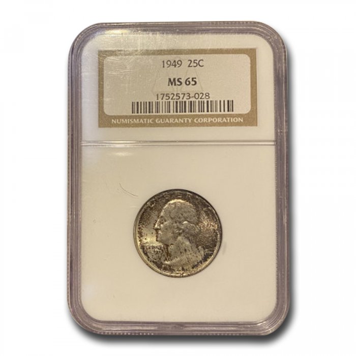 This 1949 Washington Quarter has been certified as MS-65 by NGC, one of the top two coin grading services. This highly collectible coin is a great addition to any numismatic collection.
