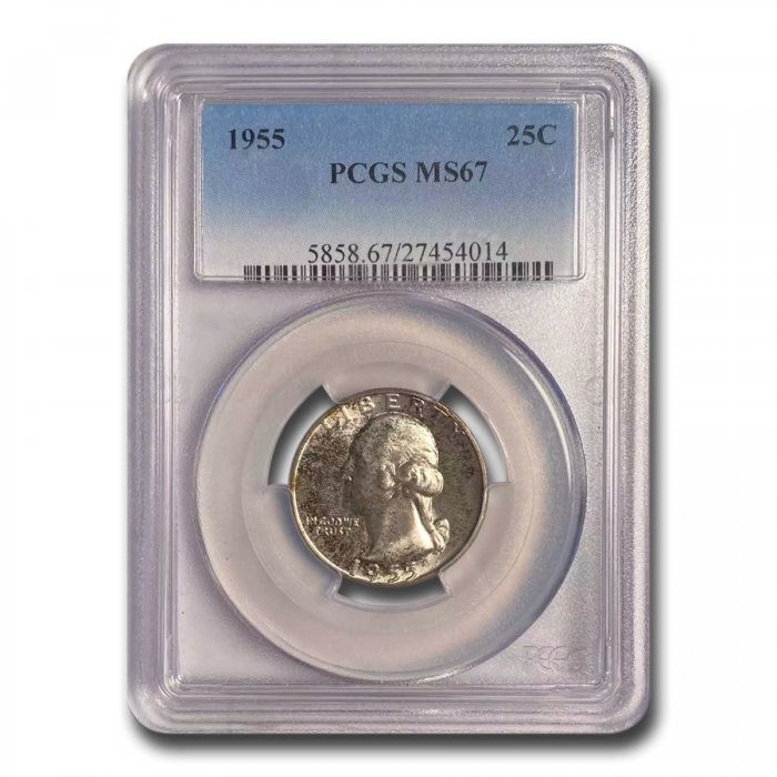This 1955 Washington Quarter has been certified as MS-67 by PCGS, one of the top two coin grading services. This coin has a population of only 64 coins!