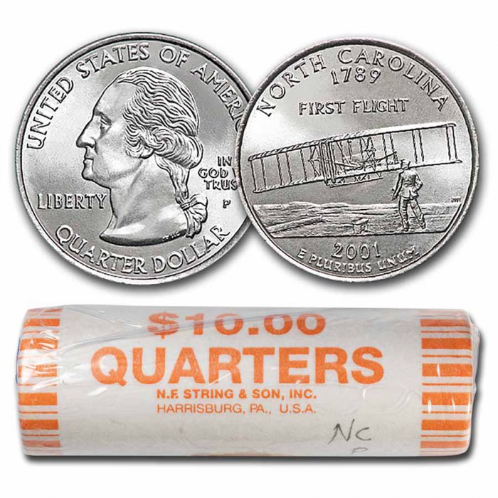 / Buy 2001-P North Carolina Statehood Quarter 40-Coin Roll BU